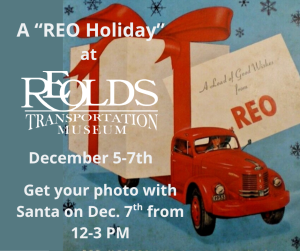 The R. E. Olds Transportation Museum will host “A REO Holiday” event. We will have our 1929 REO Flying Cloud Roadster set up in a holiday scene perfect for your family or company holiday cards. This is a rare opportunity to sit behind the wheel of this classic car.